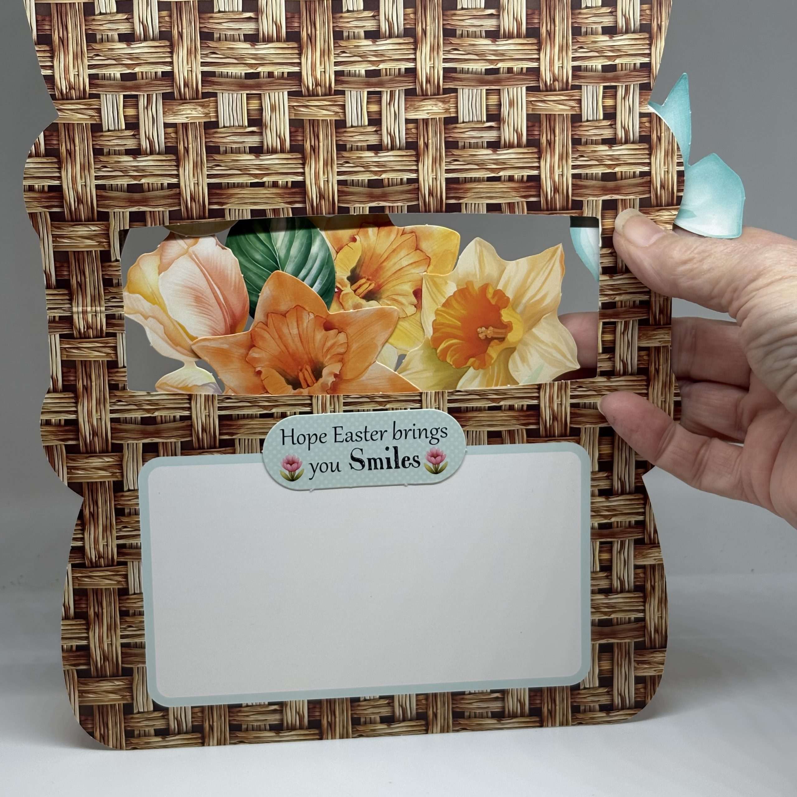Oversized Teal Basket With Baby Duck And Daffodils Easter Card